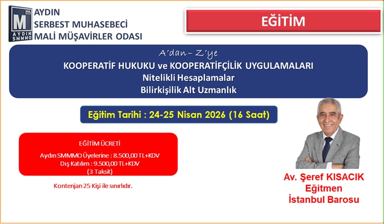 Kooperatif Hukuku ve Kooperatifçilik Uygulamaları Eğitimi Nitelikli Hesaplamalar Bilirkişilik Alt Uzmanlık